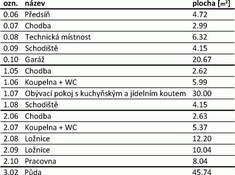 Výměry uvedené v ceníku = celková užitná plocha.